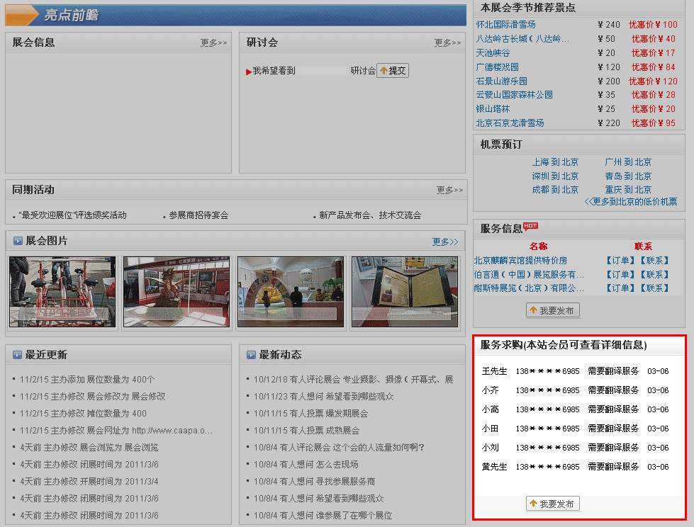 如果觀眾或展商需要搭建、運(yùn)輸?shù)确?wù),他們可以發(fā)布服務(wù)需求,并在展覽會(huì)的右下部顯示出來(lái),如下圖所示:
