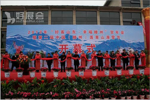 “2012年“好客山東·幸福滕州”賀年會暨第二屆中國(滕州)蓮青山滑雪節”,12月30日在在蓮青山滑雪度假中心盛大開幕。山東省服務業辦公室副主任陳清華、項目處巡視員李世志,省旅游局政策法規處處長王明波,棗莊市旅游和服務業發展委員會副主任董葉莖,滕州市委副書記李健,滕州市委常委、市政府副市長顏景焱,滕州市政府副市長張憲依,滕州市旅游和服務業發展局局長、市節會辦主任鐘向榮,東郭鎮黨委書記楊修常等出席了開幕式。