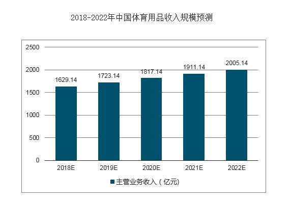 隨著生活水平的提高,人們的健康觀念越來越強,運動健身受到越來越多人們的喜愛。相關數據顯示,2013-2017年我國體育用品行業收入和利潤都在不斷增長,五年年均復合增長率分別為7.64%和9.37%,增長十分迅速。而2018年1-4月我國體育用品行業主營業務收入435.1億元,利潤總額19億元。并且,在國家相關政策的大力支持引導下,體育用品行業將得以快速發展,預計到2022年體育用品行業收入規模將進一步突破2000億元。